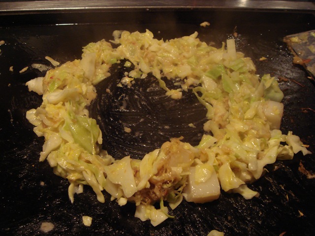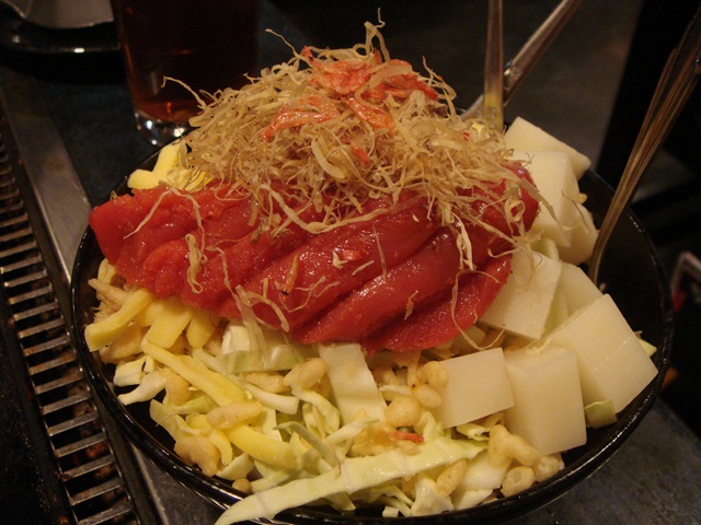 明太子もちチーズ (1280円) ~ 這應該算是自助鐵板燒, 步驟如下