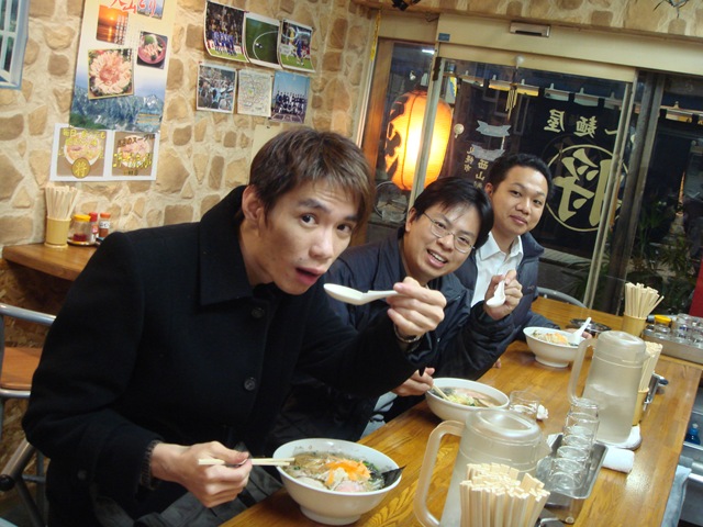 隨後三位沒吃飽的同事 又一同去吃了拉麵, 鹽味的湯頭很讚…但是我吃不下了, 就幫他們拍照囉!