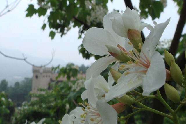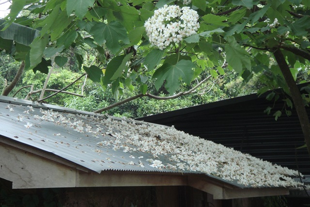 正巧碰到油桐花季, 不用到油桐花坊跟人家擠, 三義附近的天空之城(官網)就有滿地的桐花