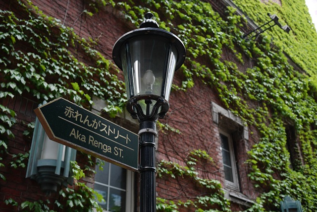 往札幌駅方向走去,一棟磚牆式建築爬滿了綠藤,十分吸引目光,這個是在整修中的地鐵站~~