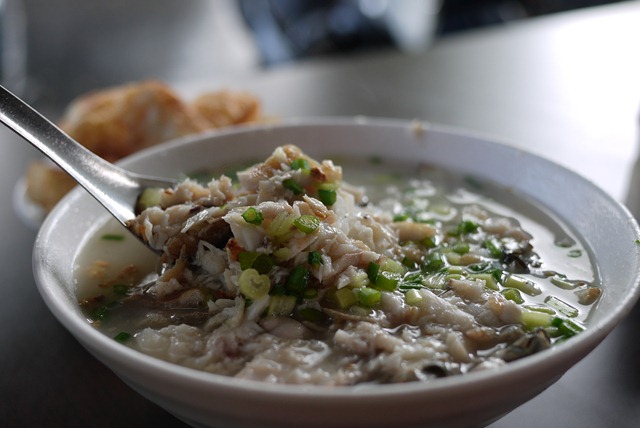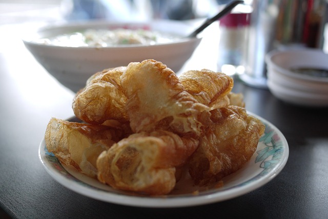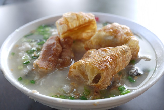 (5)阿堂鹹粥: 第一次來吃,加一盤油條,裡面有放很多蚵仔,口味還不錯唷!!  這家在包成羊肉隔壁,也是早起才有得吃的~~