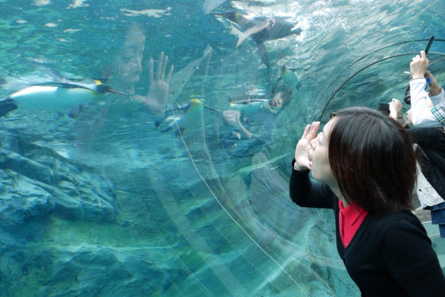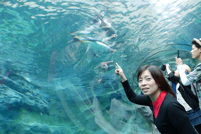 入園的第一時間,我們馬上衝進企鵝館!! 哇哇~~ 企鵝真的在天上飛呢!! (好幸福唷!!)