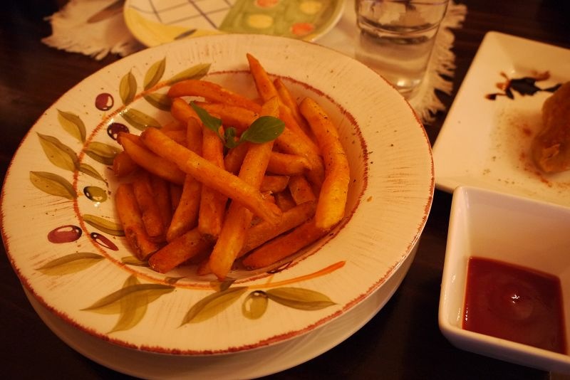 幫不懂得欣賞牛排的歪嘴雞點的炸雞翅跟薯條~~炸雞翅沒甚麼味道,上面灑了辣椒粉,連歪嘴雞都不吃,價位又高,不推~~~薯條就頗受大家歡迎囉~~~