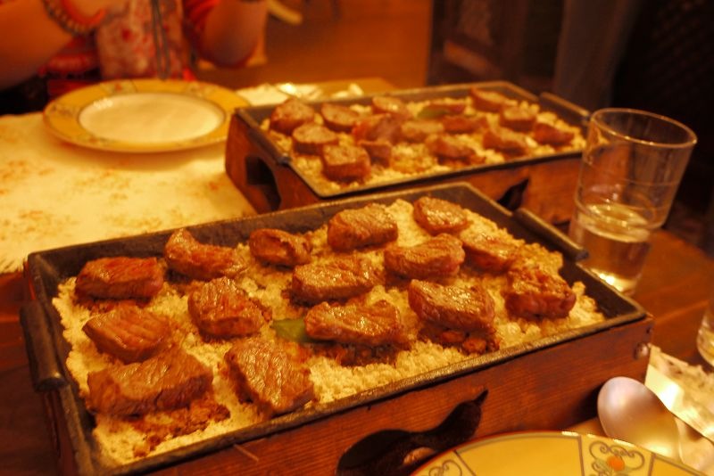 這回是岩燒牛排,光回想起來就又開始流口水了~~~ 牛排就是要吃原味,沾點海鹽,喔喔~~那是最棒的享受啦!! 這天的好康是 只要269元就可以享用價值605元的布列塔尼鹽燒牛排套餐:沙拉、濃湯、麵包、布列塔尼鹽燒牛排、甜點、飲料