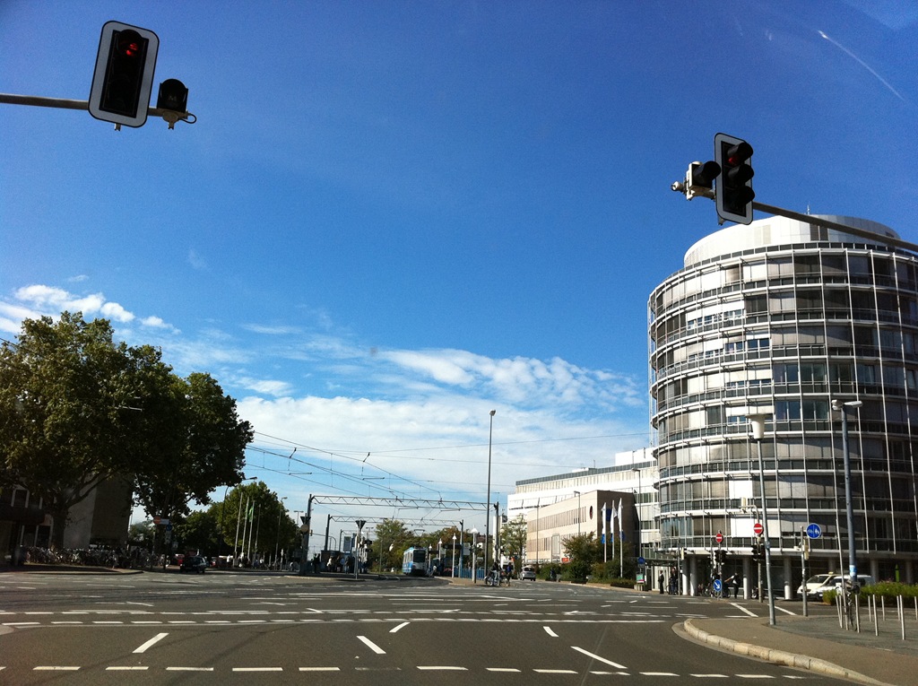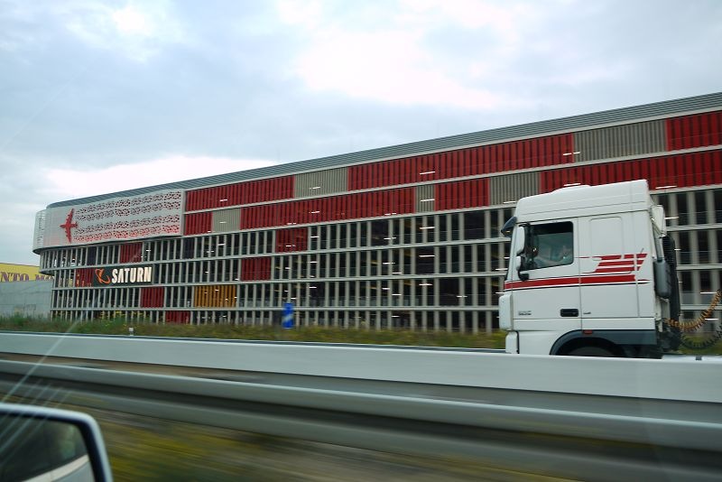 同事說要把握最後時機,來個超速快感,突破180km/hr,但沒想到,早上往法蘭克福機場方向的高速公路因為上班時間而塞塞塞,於是就殘念了Sad smile