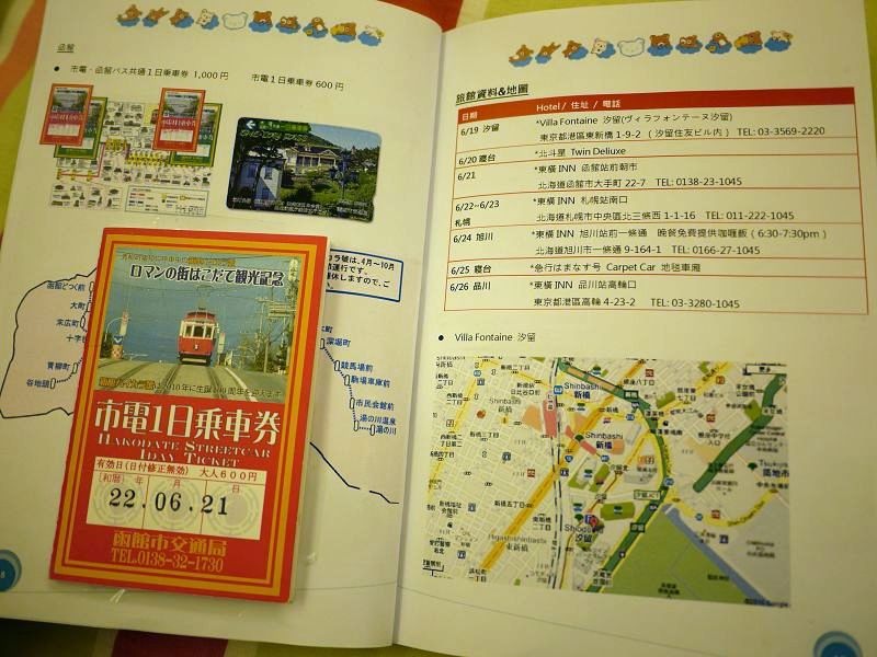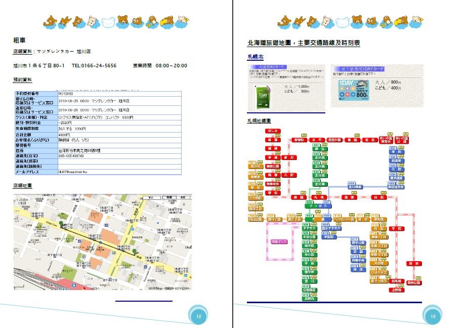 P.6-P.21是行程中所運用交通工具的相關資料,包含JR Pass、 Suica & NE’X套票,寢台列車(北斗星及Hamanasu),Mazda租車,函館、札幌、小樽等城市地鐵圖、一日券、觀光巴士等資訊。