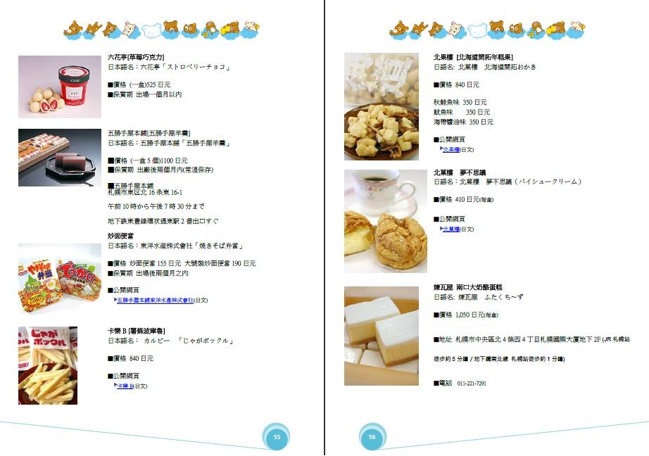 P.54-P.58是北海道甜點大集合,現在回頭看看也只吃到了北菓樓這一家。