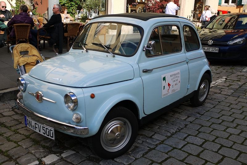 門口停了台禮物專車,也意外拍到老Fiat 500,車牌還選了FV500。