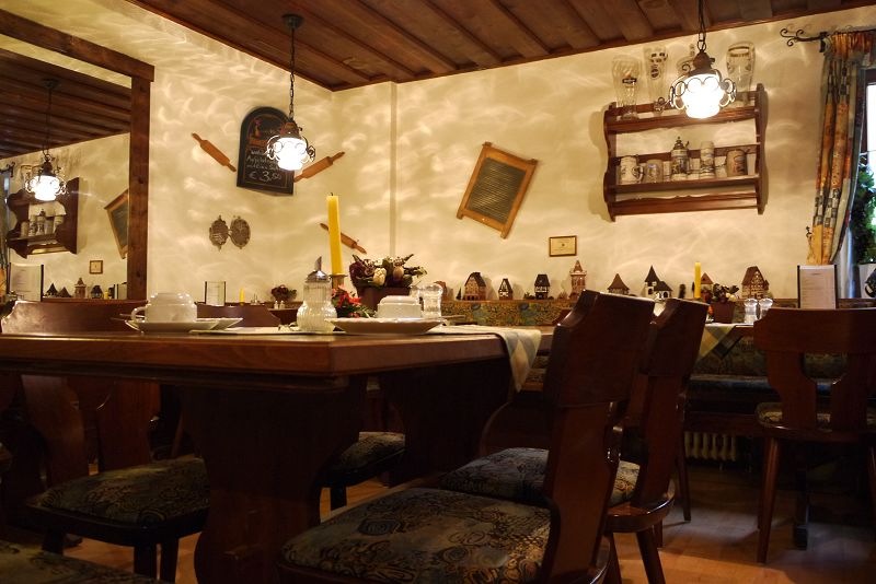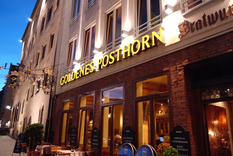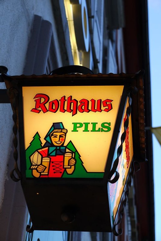 不一會兒就天黑了,挑了半天,選定了這家Goldenes Posthorn餐廳用餐,在這邊有名的是小香腸,印象中好像有點…..但怎麼沒拍照呢?  唉唷~~重點是豬腳啦~~ 嘻嘻!