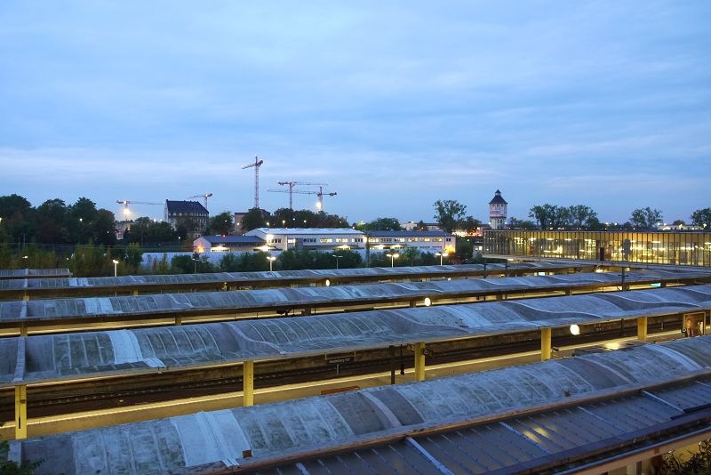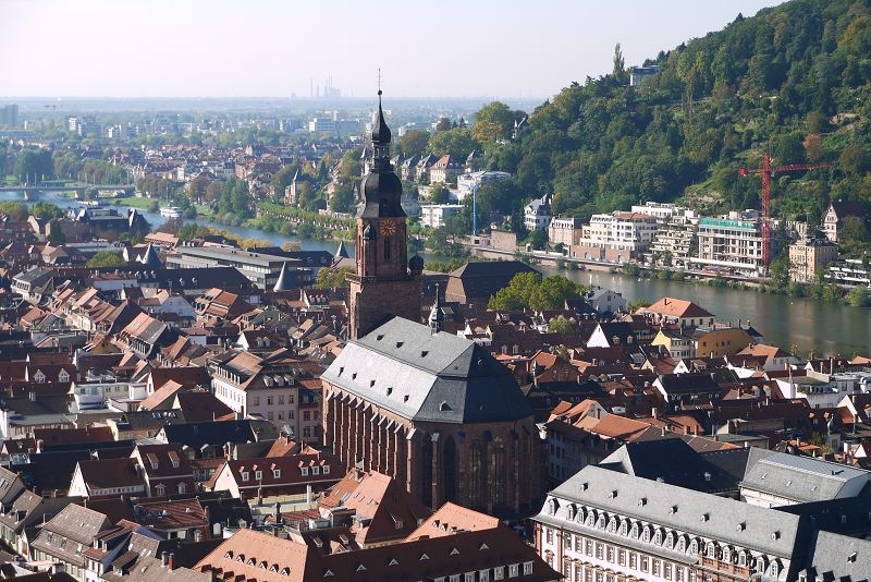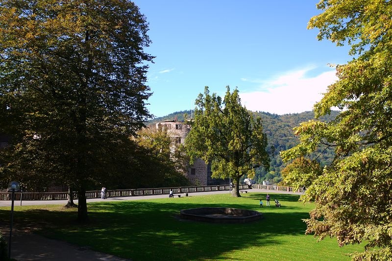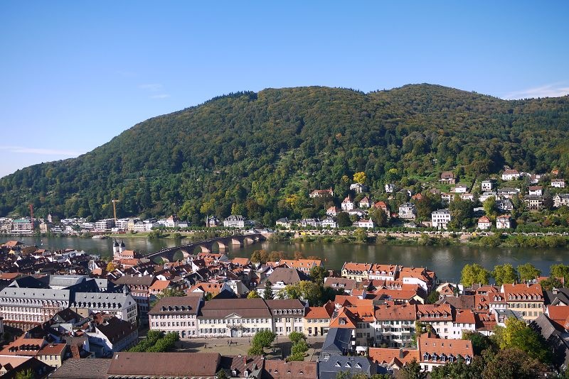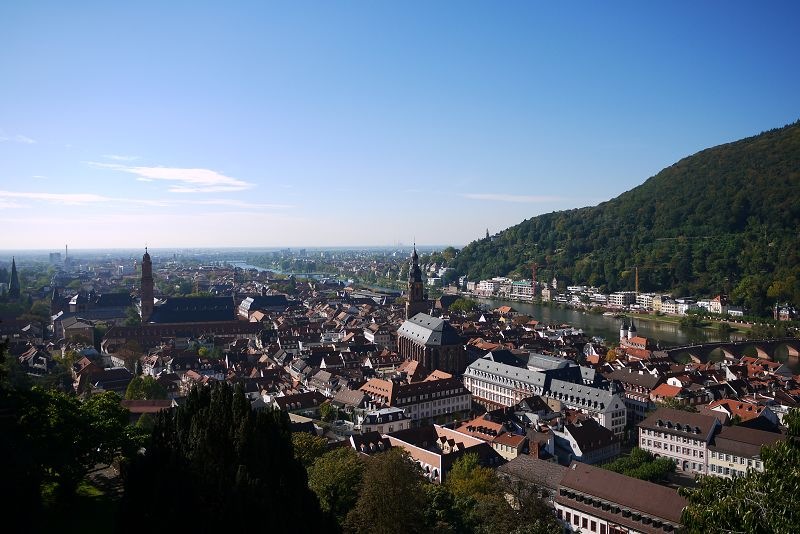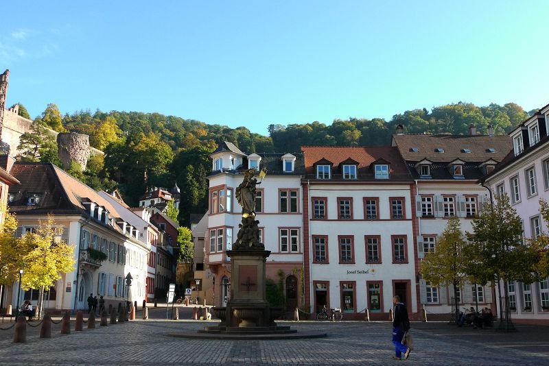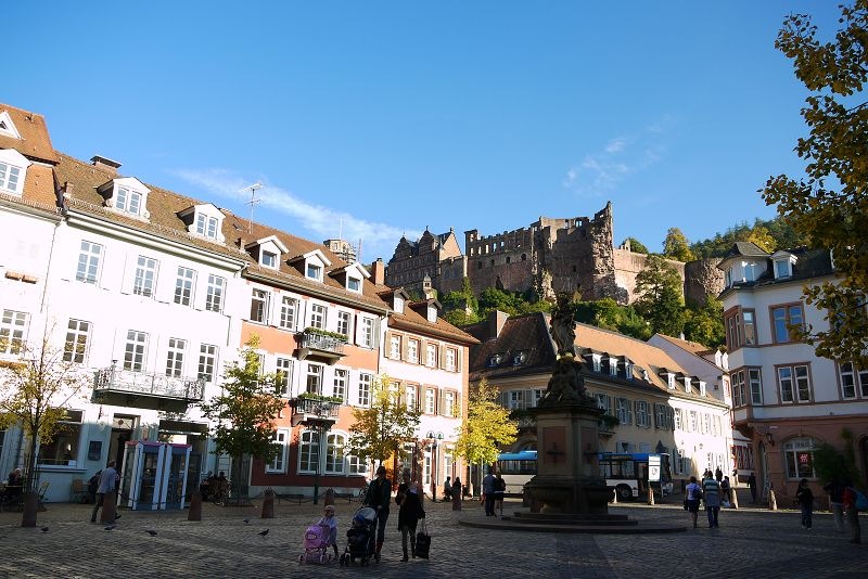 停車場的上方就是市集廣場,還可以看到高處的海德堡城堡。