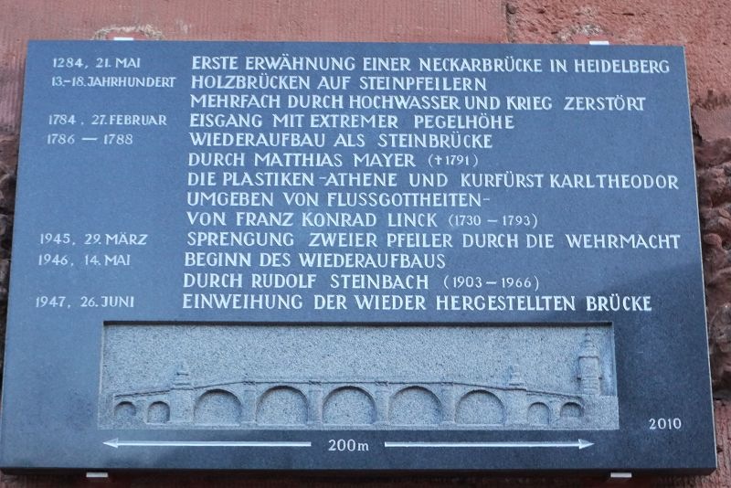 有九個拱門,已有二百多年的歷史,是海德堡跨越內喀爾河﹝Neckar R.﹞的 第一座石橋。