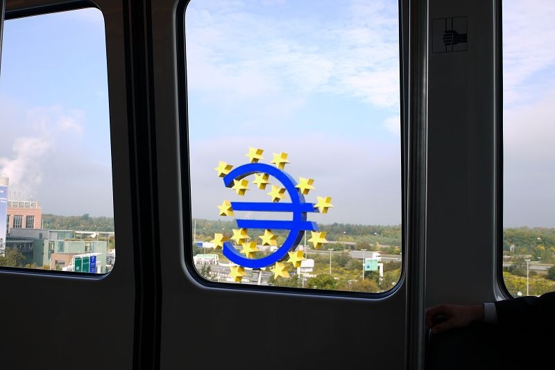 法蘭克福機場外的歐元標誌。