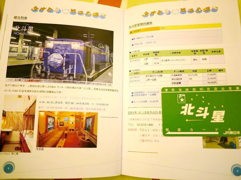 北斗星寢台列車,包括預約資料及取票地點時間等相關資訊,在回台後將寢台的"房卡"也貼上去,以茲紀念。