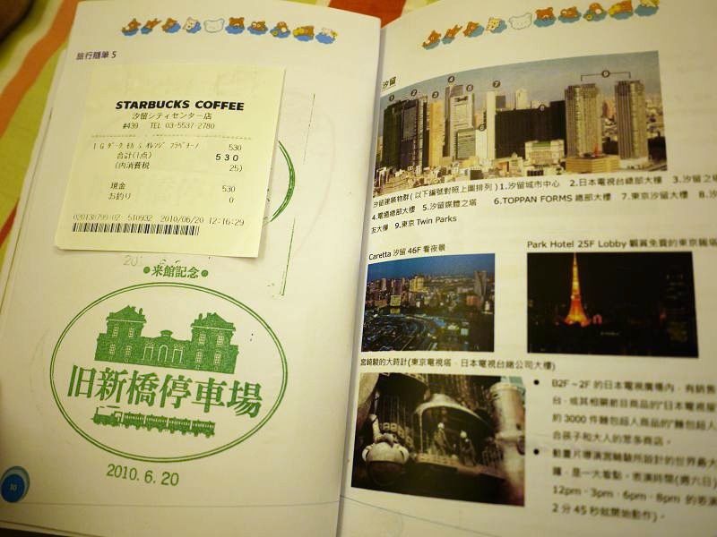 首先是汐留,去了舊新橋停車場,根據手札記載,這天還喝了杯星巴克。(其實是第一個章蓋得太爛,所以把星巴克的收據貼上去遮醜Smile with tongue out)