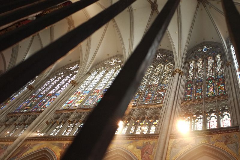 不久,窗外透出陽光,彩繪玻璃映照出七彩的顏色,外面放晴了,~~