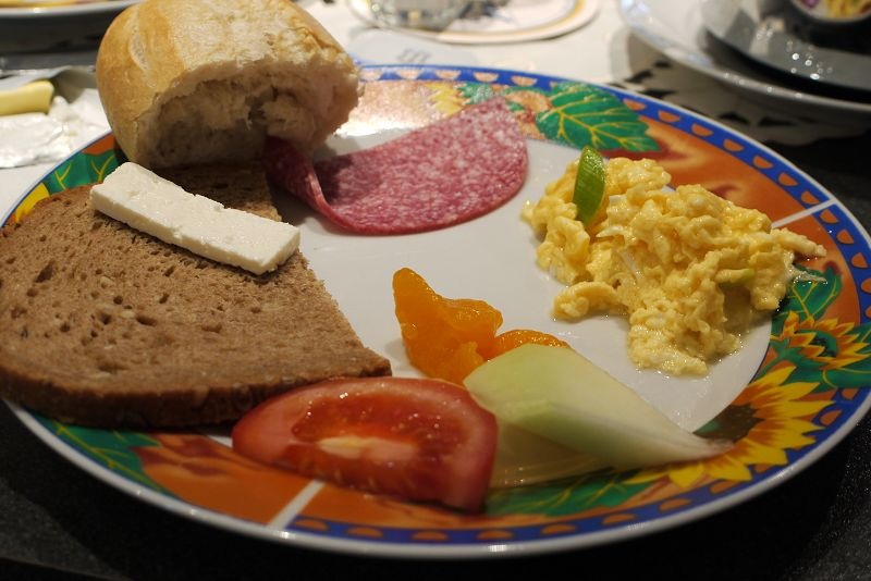 餐廳供應的德式自助早餐還不錯,廚師是位中國人,看到我們便開心的講起中文,還說這幾天天氣寒冷,明天起煮粥讓我們暖暖身,哇~~在台灣就已經很少吃粥了,能在德國吃到,可說是十分珍貴呢~~