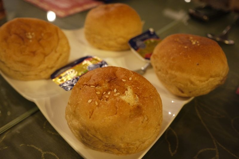 甜點是破酥包,同事說皮很特別,裡面包豆沙,不會太甜,吃到這兒,真的有夠飽了~~