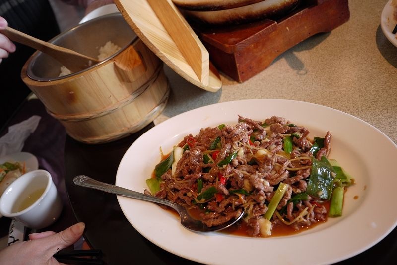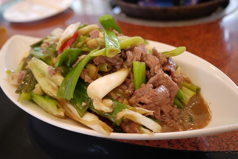 陸續上來的是 雙拼 大薄片與豌豆涼粉,蔥爆牛肉,都有點微辣,超下飯!