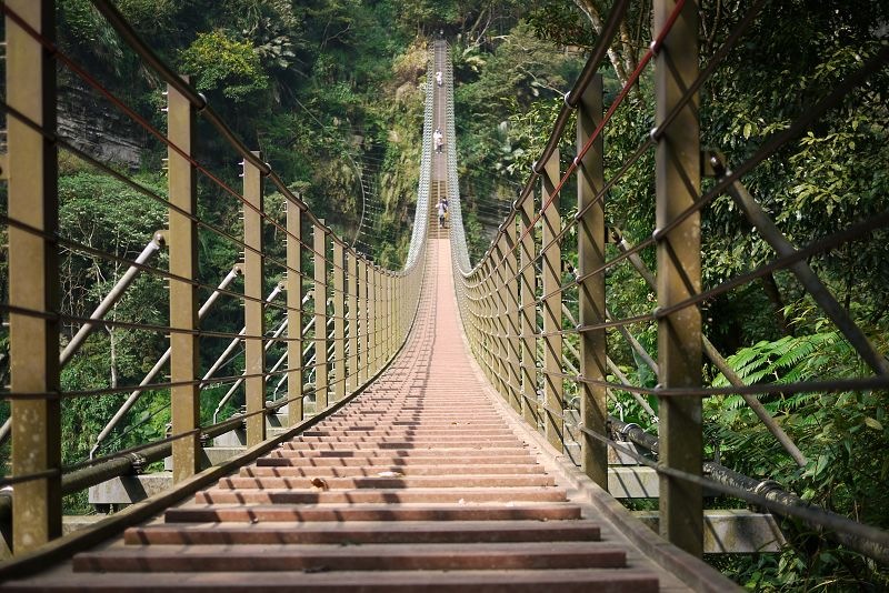 所謂梯子吊橋,就是吊橋上面還有階梯,下面就是太極峽谷的,我本身怕高,但這吊橋還挺穩,走在上面並不會感到害怕。
