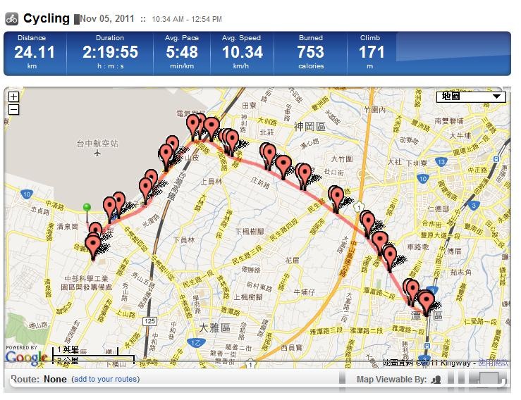 上周末又沒騎到車,只好拿舊相片來回味,今天要介紹的是潭雅神綠園道,同樣是用Runkeeper做紀錄。(ㄟ…又是兩個月前的行程)