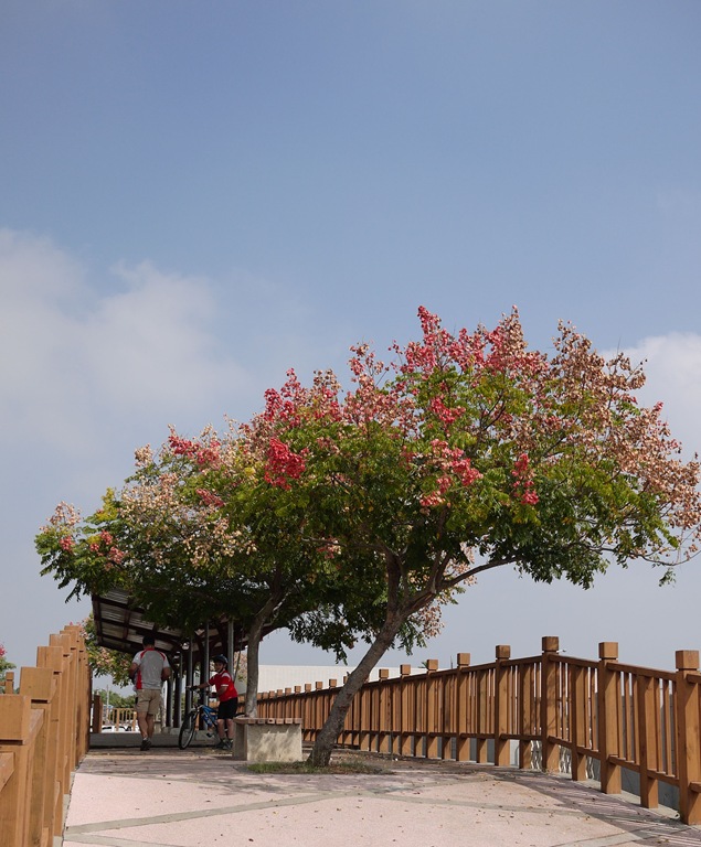 這個自行車道有綠蔭的地方還不少,陽光雖大,但騎起來很涼爽。