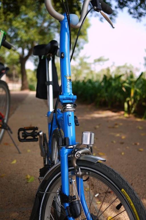 因為自行車道與幾個大路口有交會,一共會經過四座橋樑。其中一座漆成桃紅色的,映著藍天,還有藍藍的小鵝號,拍出來的顏色很棒,便在這裡幫小鵝號多拍了幾張相片。