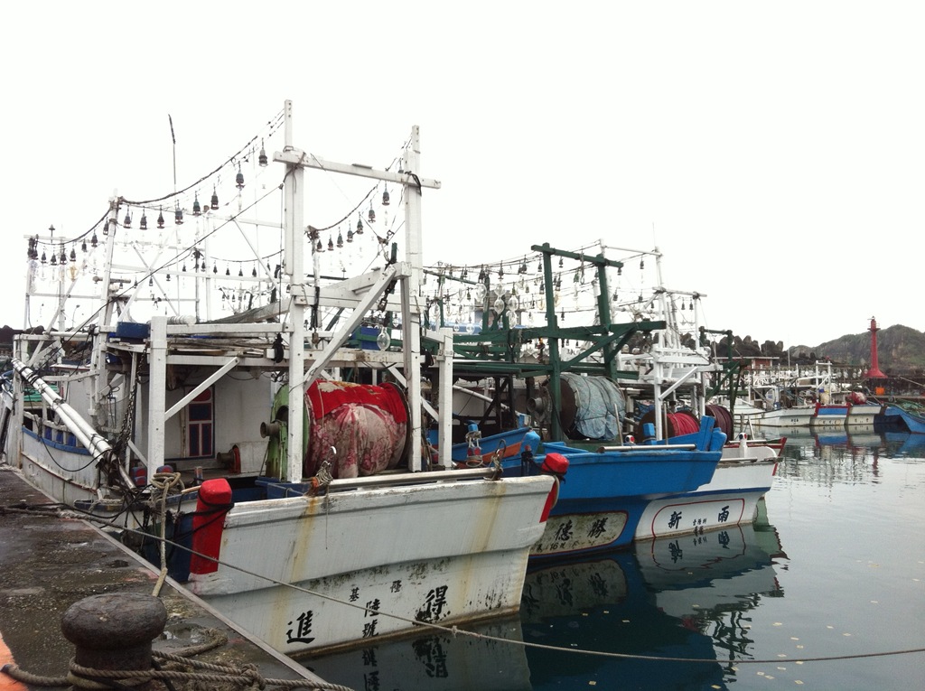 接著騎到旁邊的小漁港逛逛,漁船都還在放年假。