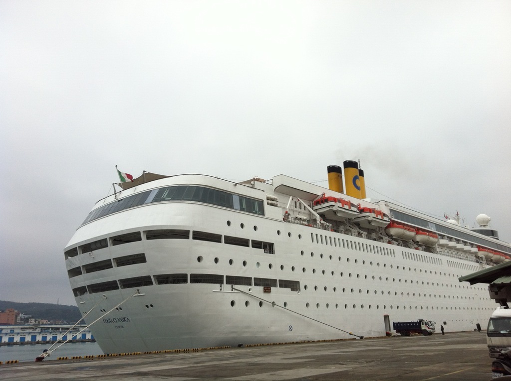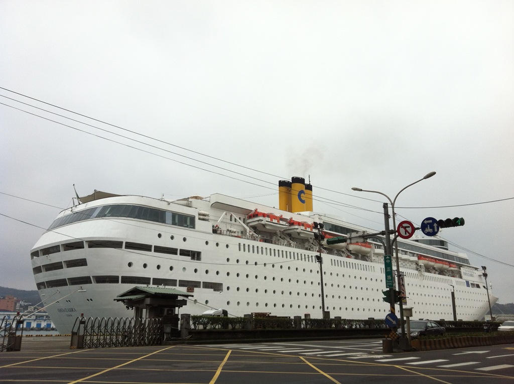 繼續往基隆港騎,今天來了艘大船,騎過去瞧瞧。