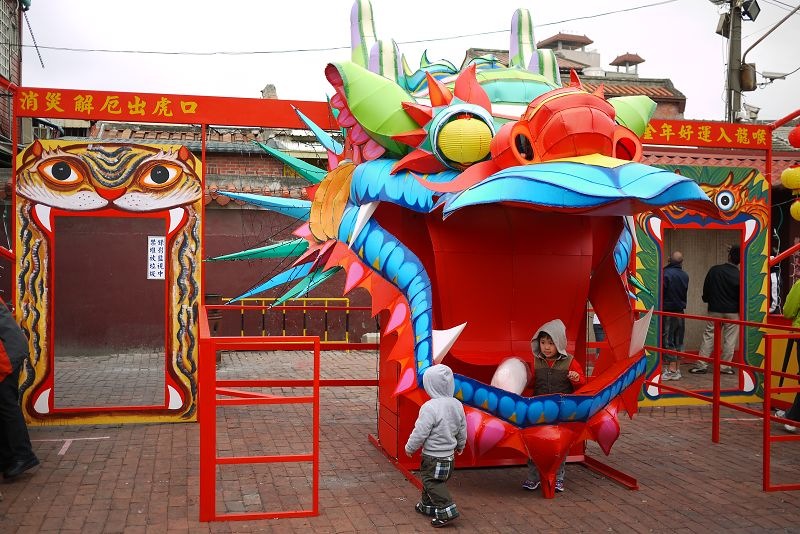 拍照的時候,剛好有一個人誤入虎口,吼~~走錯邊了啦~~~(好運入龍喉,解厄出虎口)
