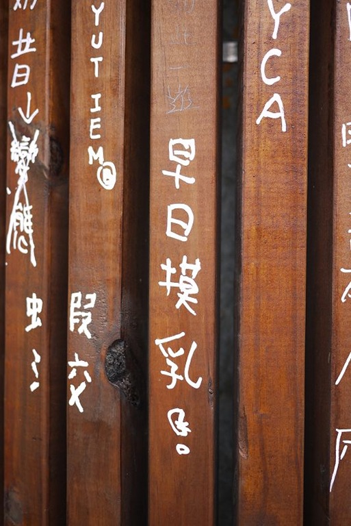 牆上寫滿了到此一遊的字句,實在真令人傻眼,在一堆簽名之中,發現一個"早日摸乳"的字樣,這位同學的願望也太白話了吧!!