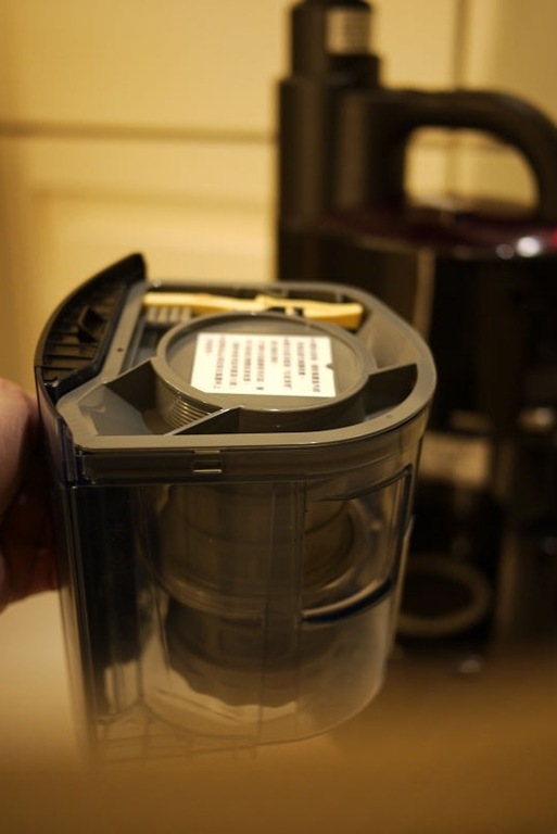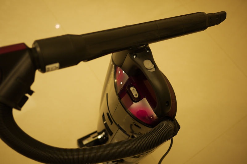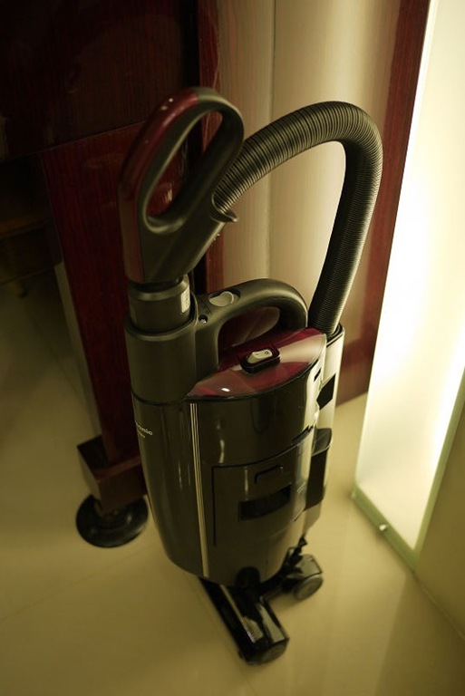 最後就是插電來使用囉~~ 因為已經10點多了,夜深人靜,所以覺得聲音有一點點大,明天白天再試試看。吸力頗滿意,比小綠綠強很多,Sales說"遠心力"的350W比較強,反正夠用就好,挺方便的,尤其是吸角落的灰塵,不用換吸頭就可以,真棒。稍微測試一下就趕緊關掉了,以免擾鄰。