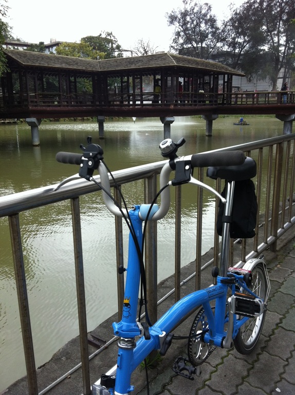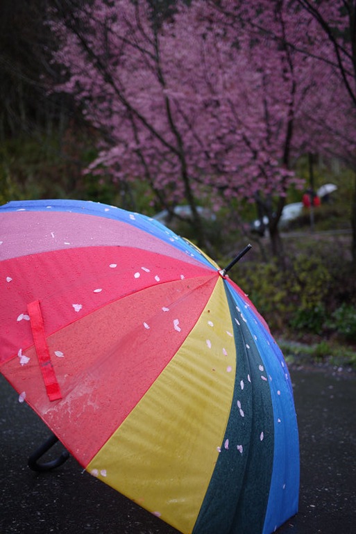 偶的一把彩虹小雨傘,也沾滿了櫻花花瓣,在這涼亭中拍了一張覺得很有fu的相片。