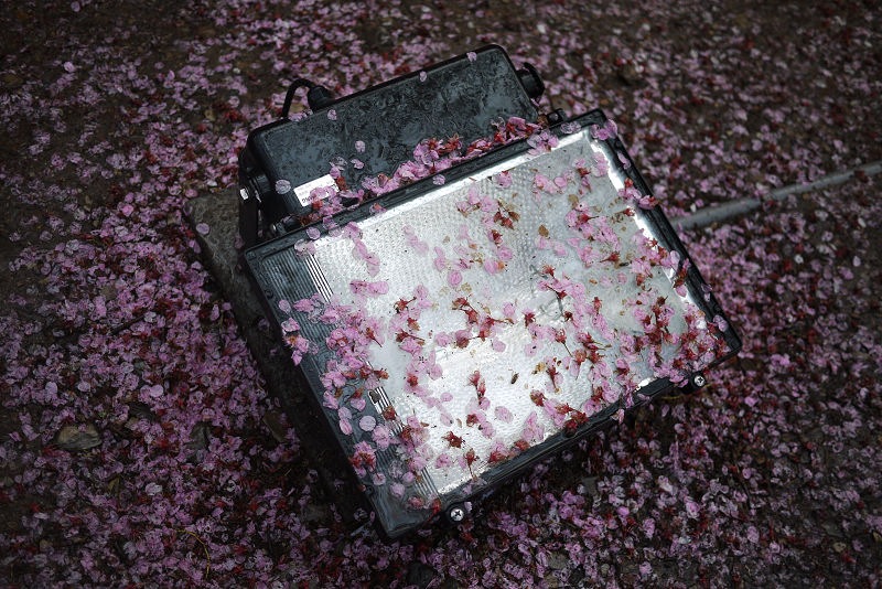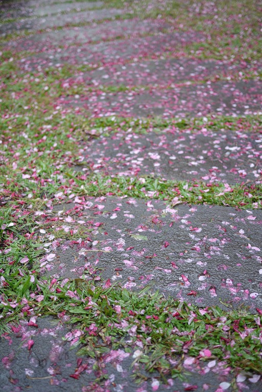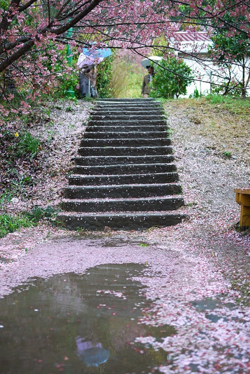 有一個滿是櫻花的水坑,樓梯前有好幾台相機駕著,可惜我還沒體會到要怎麼取景比較好。