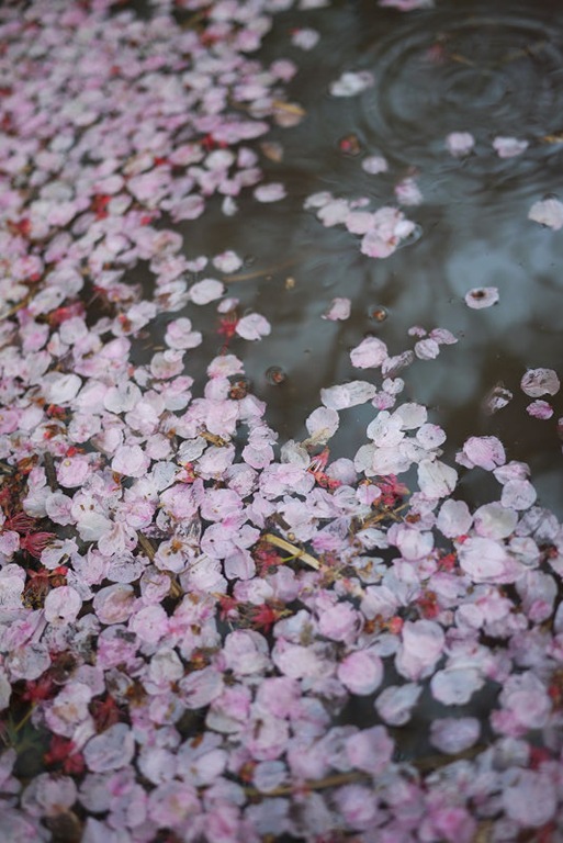 但光是拍飄浮在水面的櫻花花瓣,就覺得好美。