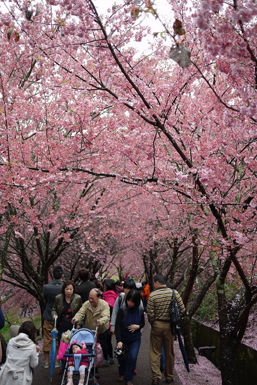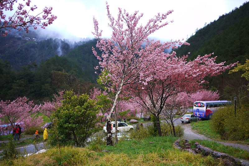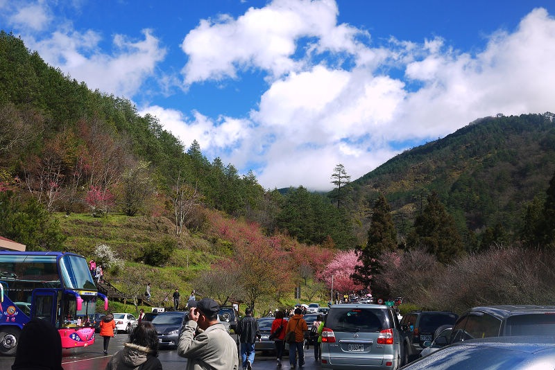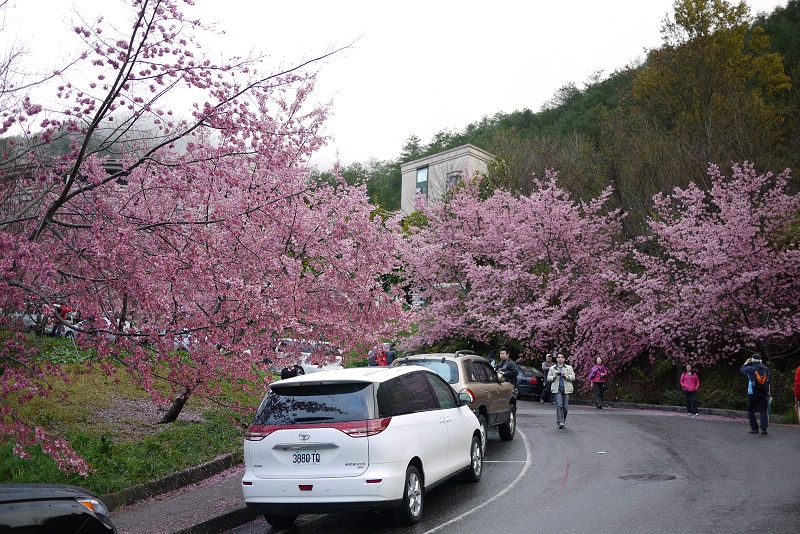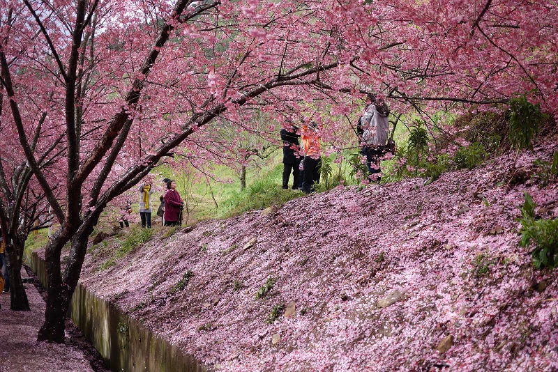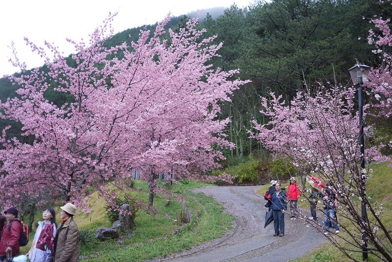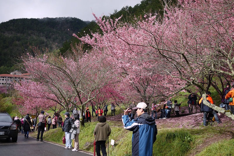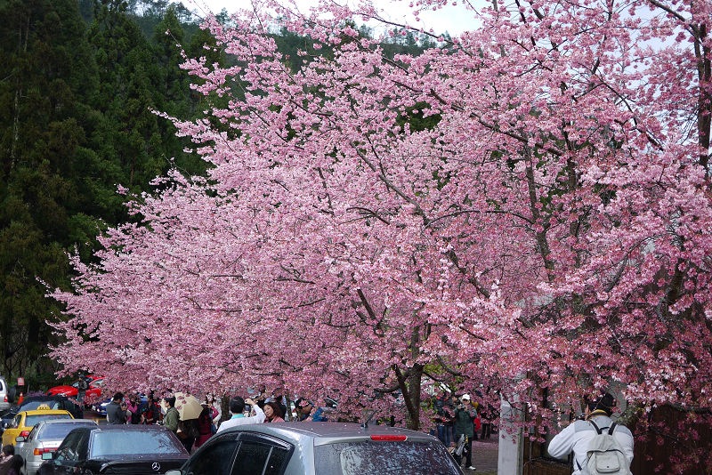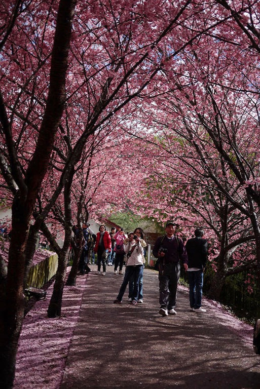 不愧是全台最大的紅粉佳人栽種點,盛開的櫻花隨處可見。