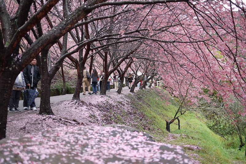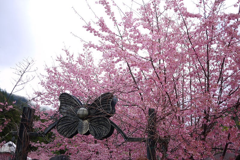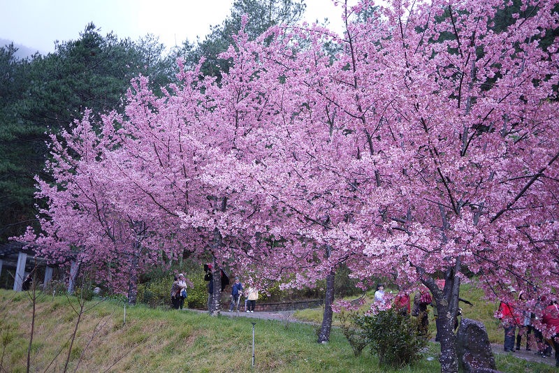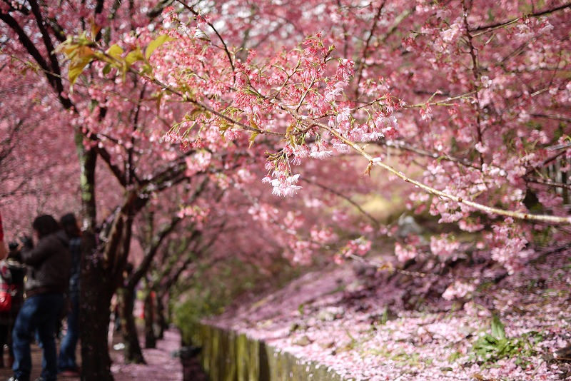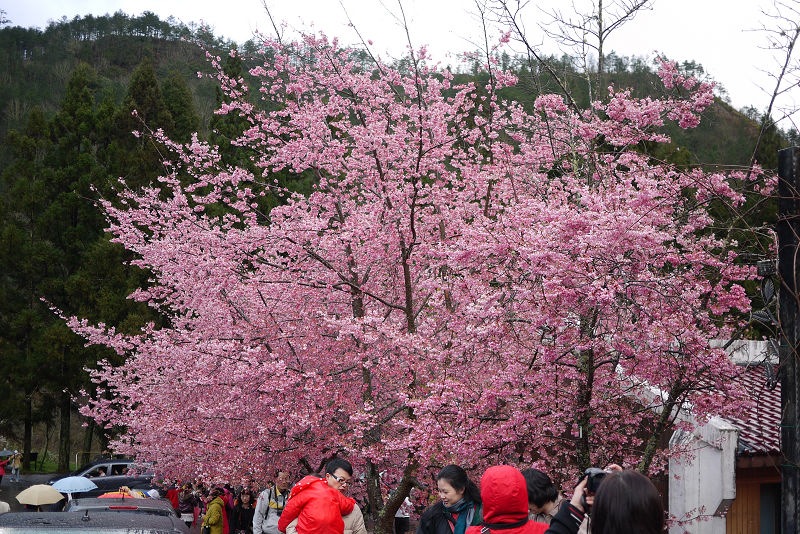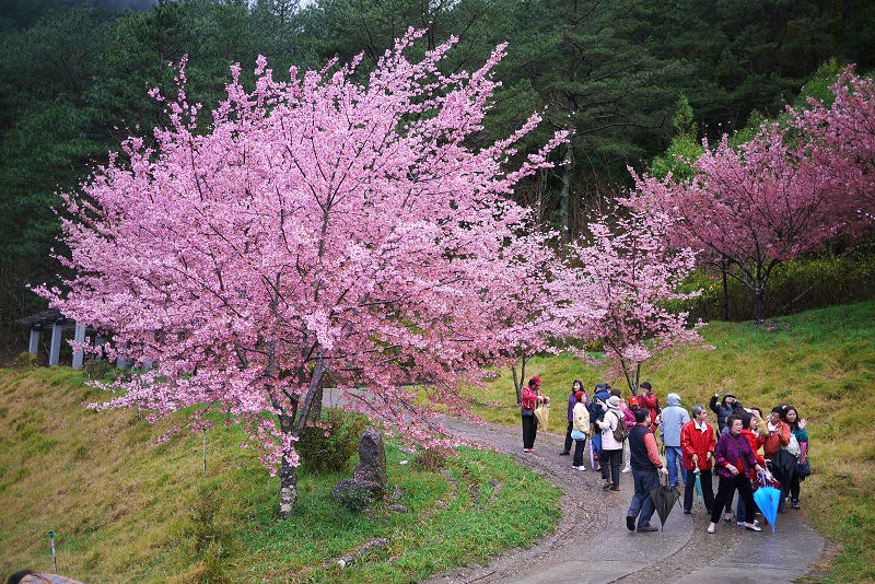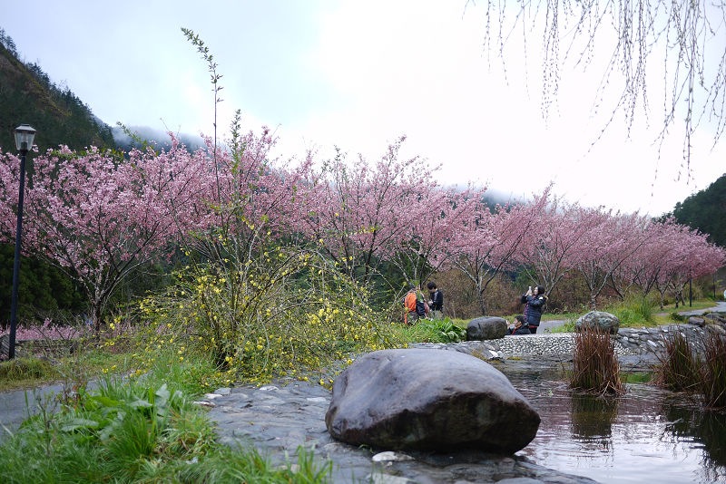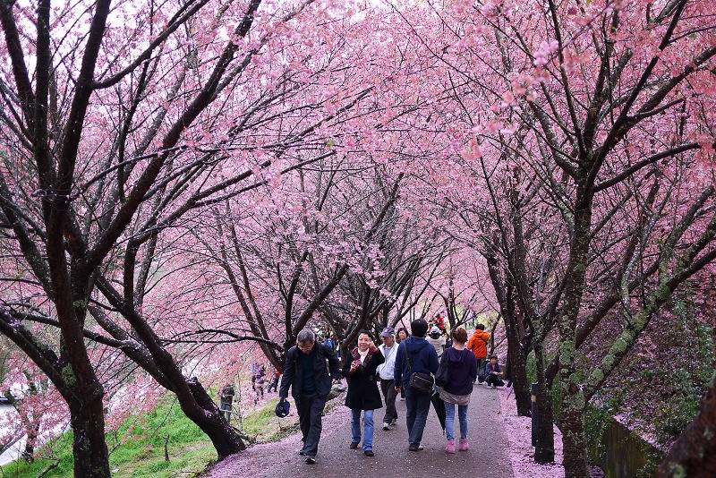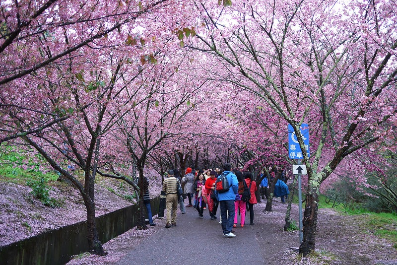 不愧是全台最大的紅粉佳人栽種點,盛開的櫻花隨處可見。