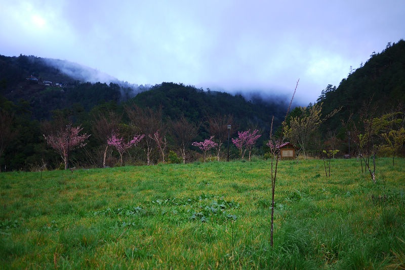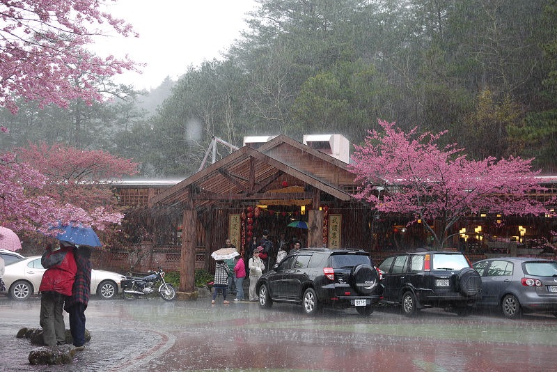 晚上車子並不多,但是開著開著下起雨來,邊開車邊擔心起武陵的花況,雨越下越大,霧氣也上來了,路況大致上不錯,只有一小段石頭路(回程時整點單向管制通行),我小心翼翼地開著車,約莫三點左右抵達武陵,售票口無人看管,省了門票130/人(平日)及停車費(80)元。