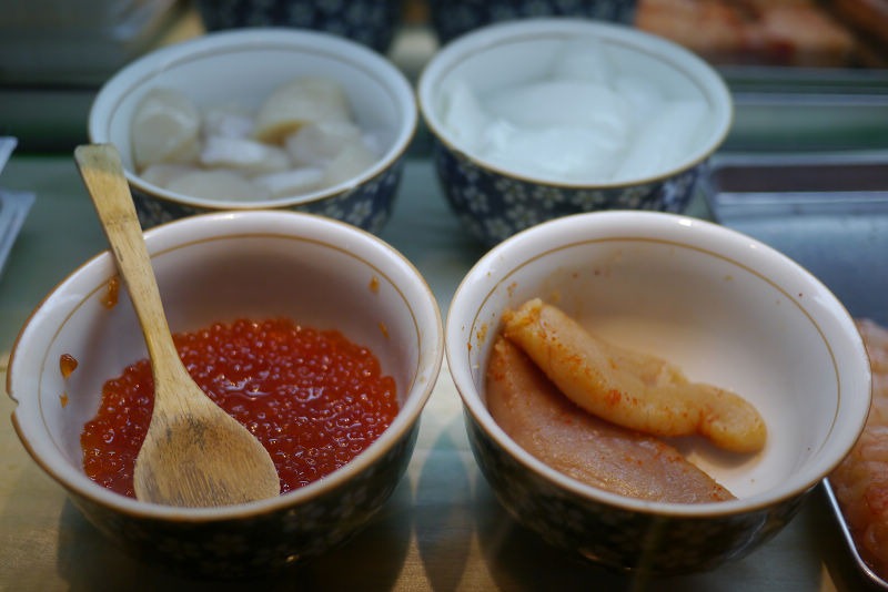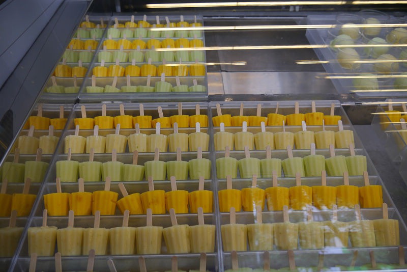 店門口有個冰櫃,裡面有單球冰淇淋,還有各式顏色可愛的小冰棒。原本以為是對外販售的,但排隊排著排著,店員拿出了冰淇淋跟冰棒發給了正在排隊的顧客,甚至是路人也可以免費享用。
