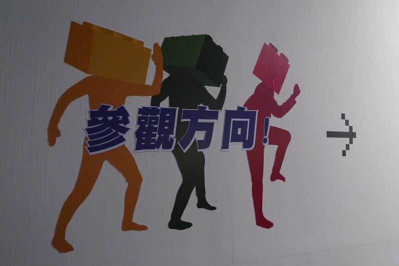 展覽場內的標示,也都是有著積木人頭的積木人。