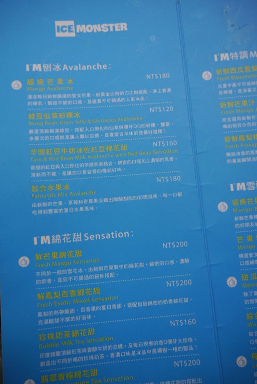 看完展覽,正是口渴的時候,附近有家芒果冰店,很有名喔! 就是那個永康街老闆開的啦~~店名叫做ICE MONSTER。