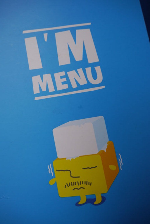 招牌、MENU都是藍色系,透過鮮黃色的公仔,形成強烈對比。看一下MENU,有各式冰品還有飲料。