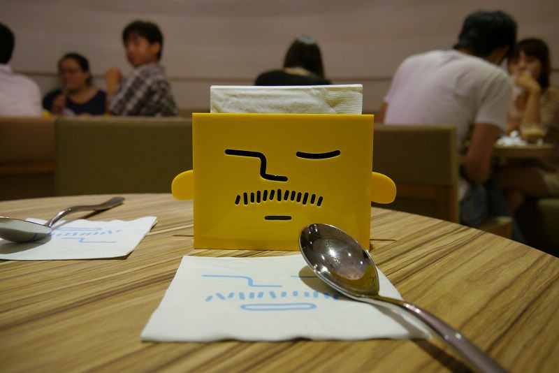 並沒有排很久(也許是吃冰吃到忘了)就進到店內,女性顧客佔多數,桌上的面紙盒很Q。