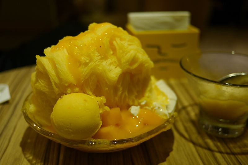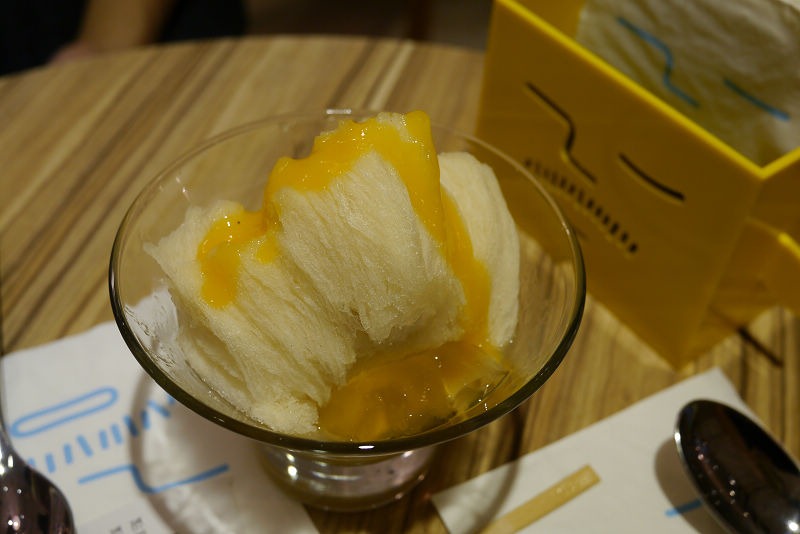 可以看到有芒果冰淇淋、奶酪、芒果雪花冰、芒果醬、新鮮芒果。芒果應該是店家特別挑過的,有夠甜的。整體來說,兩個人只花了200元,從門口候位(吃了一球哈密瓜冰淇淋,跟一支檸檬迷你冰棒),等待餐點上場前的冰品招待,到招牌餐點上桌,服務做得非常好,很推薦大家去朝聖喔~~