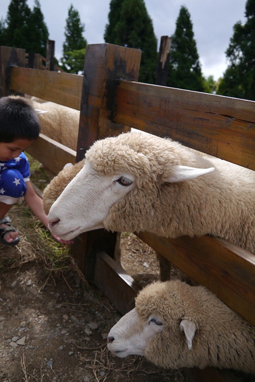 哇!!!! 綿羊耶~~~超可愛的啦!!  好多小朋友在餵綿羊,牠們好像很餓的樣子,看到人就很親切地把頭探出來。
