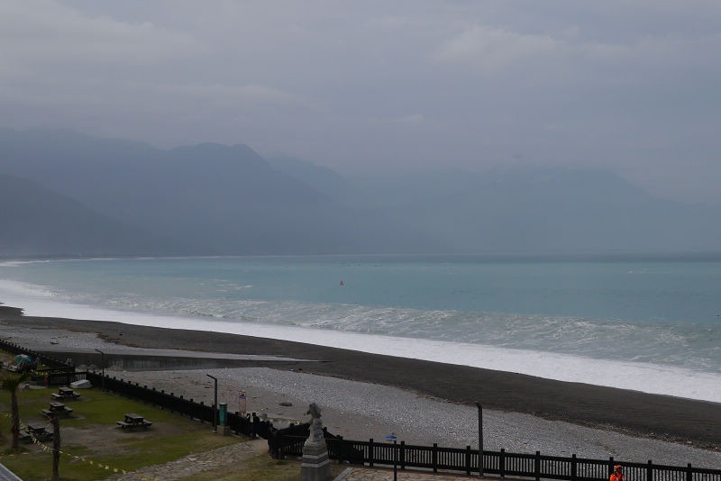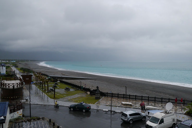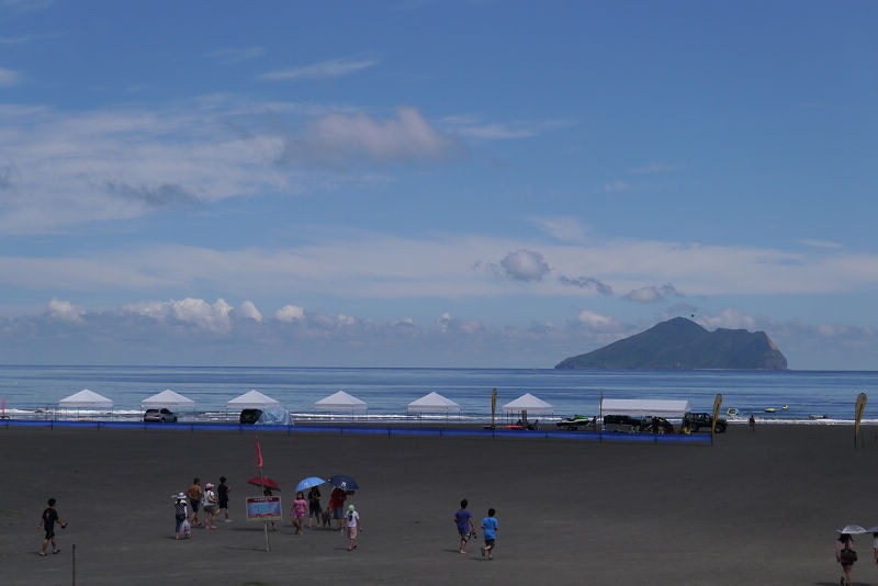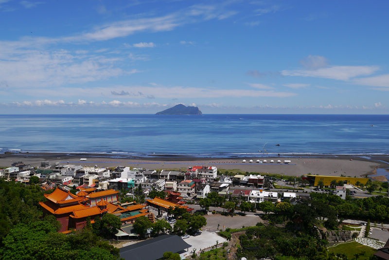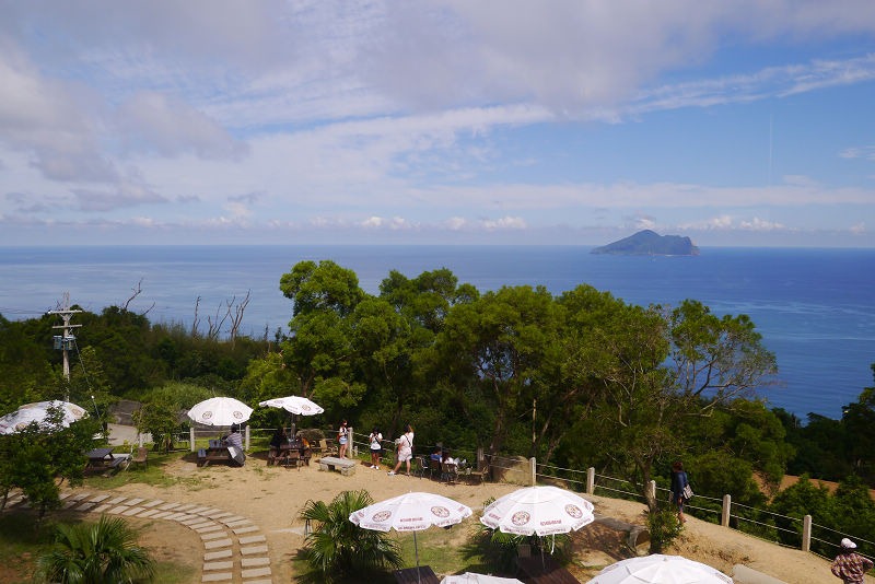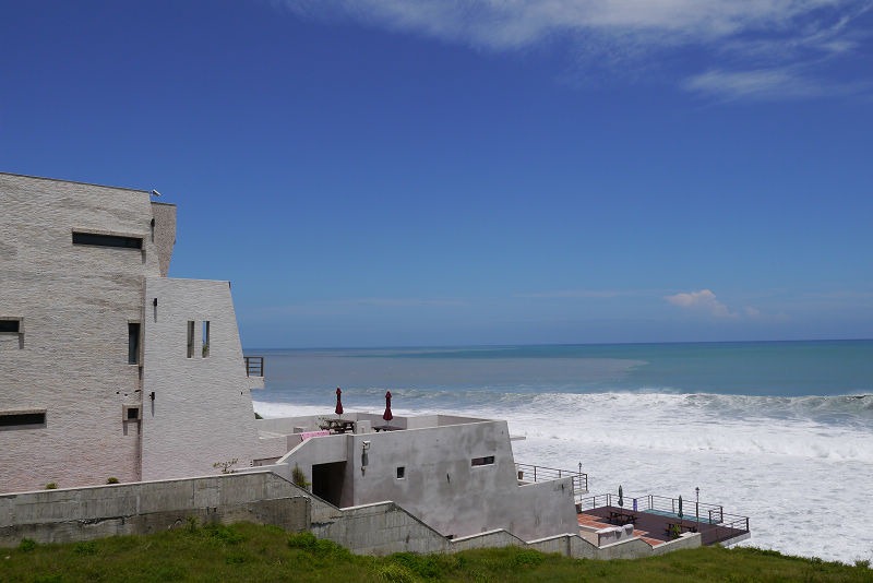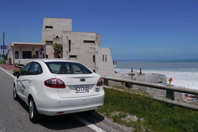 飯後怕雪隧塞車,於是決定開濱海回家,看到了一棟黃色的建築,就停了下來,原來這裡是外澳沙灘,風景真是太讚了,只不過天氣太熱,我們都沒有往沙灘走去。