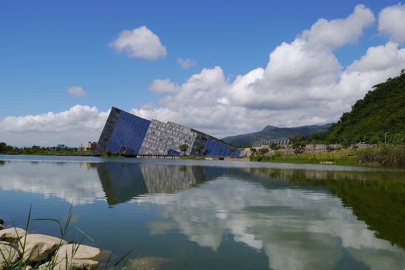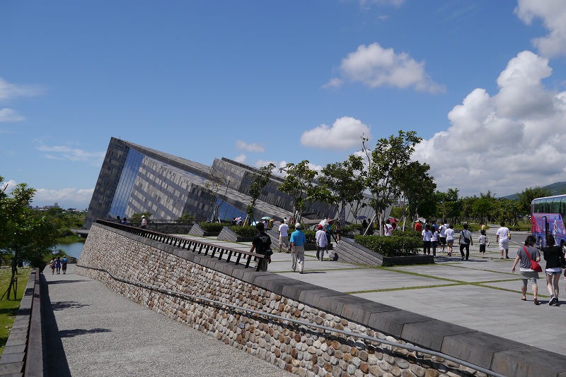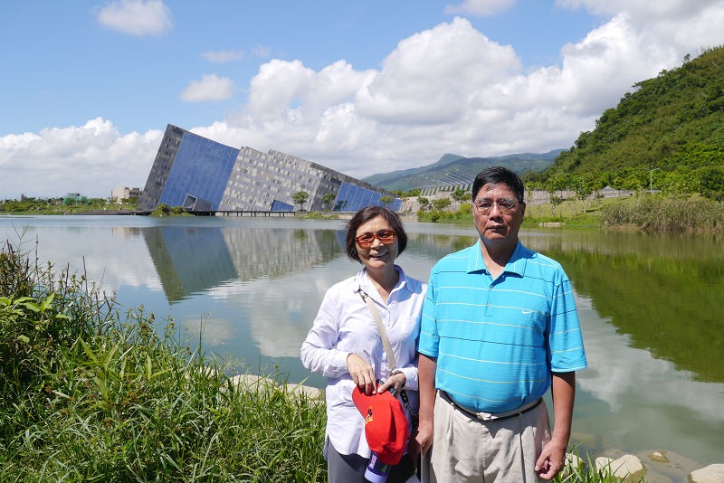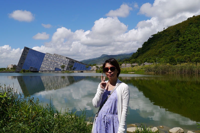 爸媽已經來過兩次了,我跟小弟則是第一次到訪,那天天氣超好,藍天白雲,特殊的三角形建築倒映在水中,好美! 但是太陽也粉烈,一下子就曬黑了!!