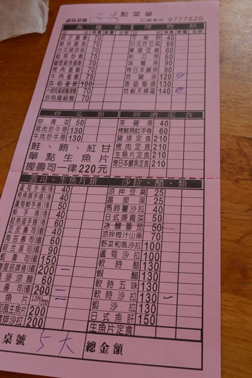 生魚片$220、握壽司 $220。