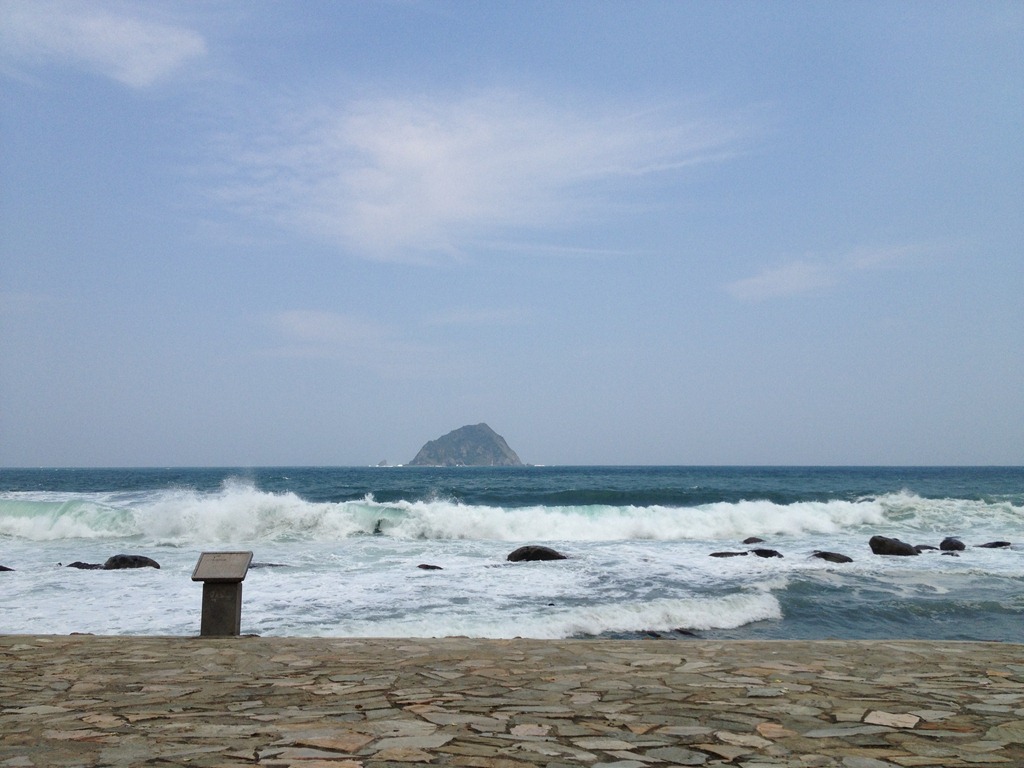 印象走不到100步路吧~~就看到基隆嶼在正前方,還有一陣陣的白浪襲來,好壯麗的景色!!