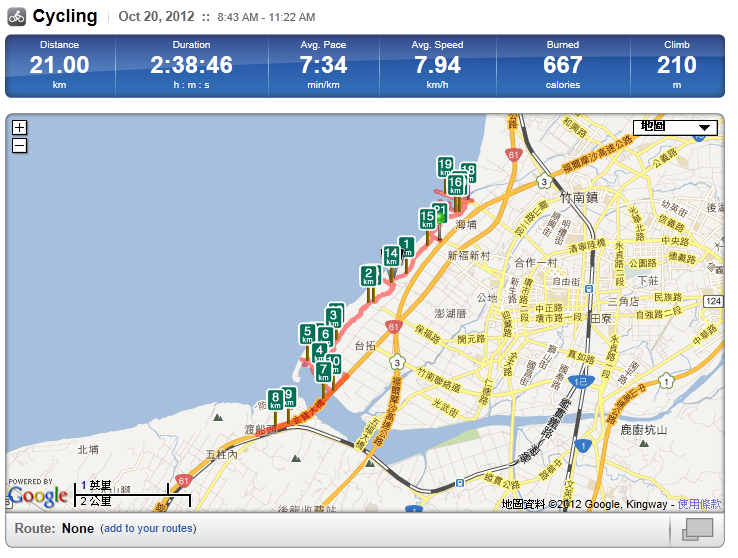 同事說竹南就有個"涼爽"的自行車道,我上網查了一下,隔天就決定去一趟。我把車停在"假日之森"的停車場,開始這天的冒險。