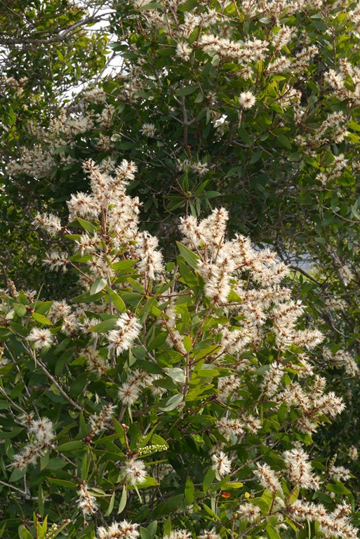 最近常看到的"乖乖樹" (我自己取名字的,因為遠遠看起來像是長著許多乖乖的樹),還有不知名的白色小球球。